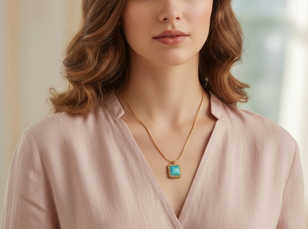 A perfect balance of timeless elegance and modern minimalism, Indiriva Noir Charm Necklace is designed to make a bold yet refined statement. Featuring a striking square blue pendant framed in golden detailing, this piece is crafted from high-quality stainless steel with an anti-tarnish finish—ensuring lasting shine and durability.
